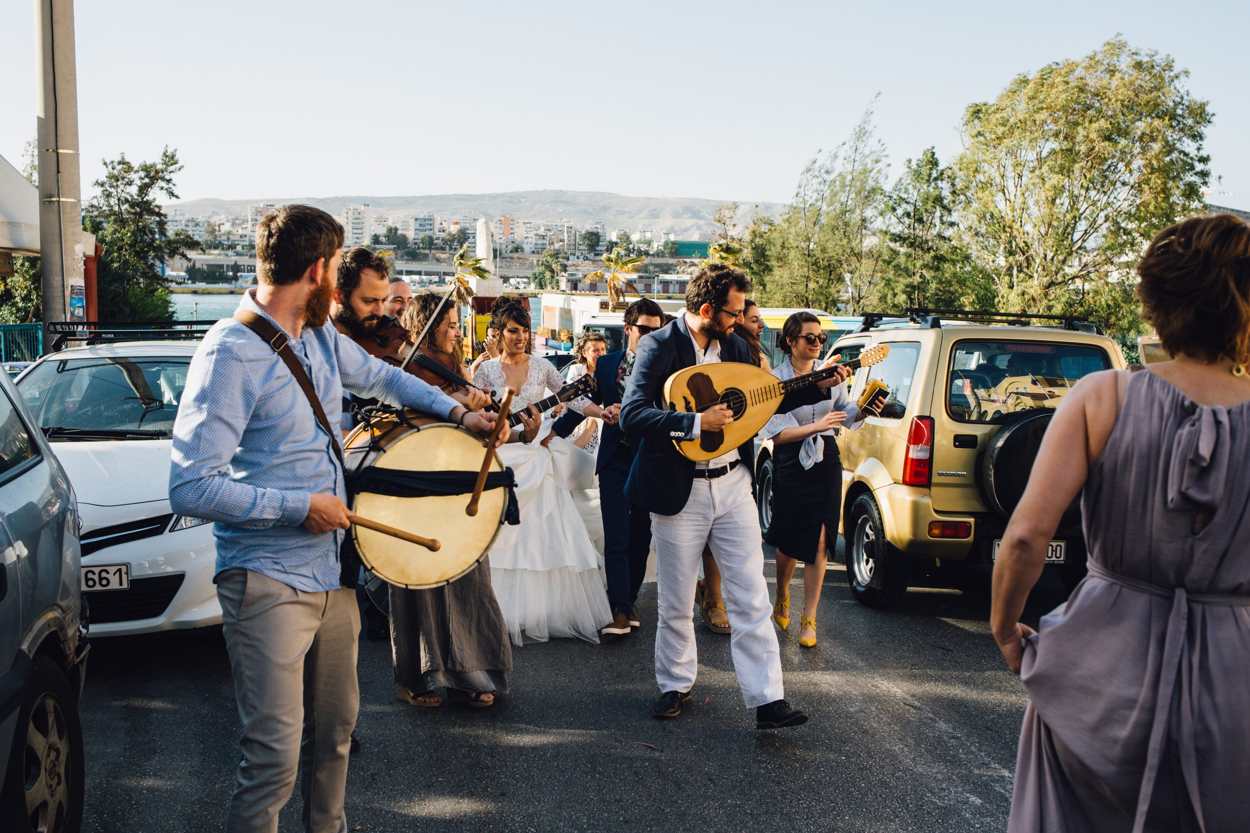 Με χορούς κυκλωτικούς, με τραγούδια από τους νιόγαμπρους, με νταούλια και βιολιά και τα στολισμένα πελώρια πλοία αντίκρυ μας να δίνουν ξεχωριστό χρώμα στην υπέροχη βραδιά, γίναμε όλοι μια μεγάλη αγκαλιά γύρω απ’ το ζευγάρι μας.