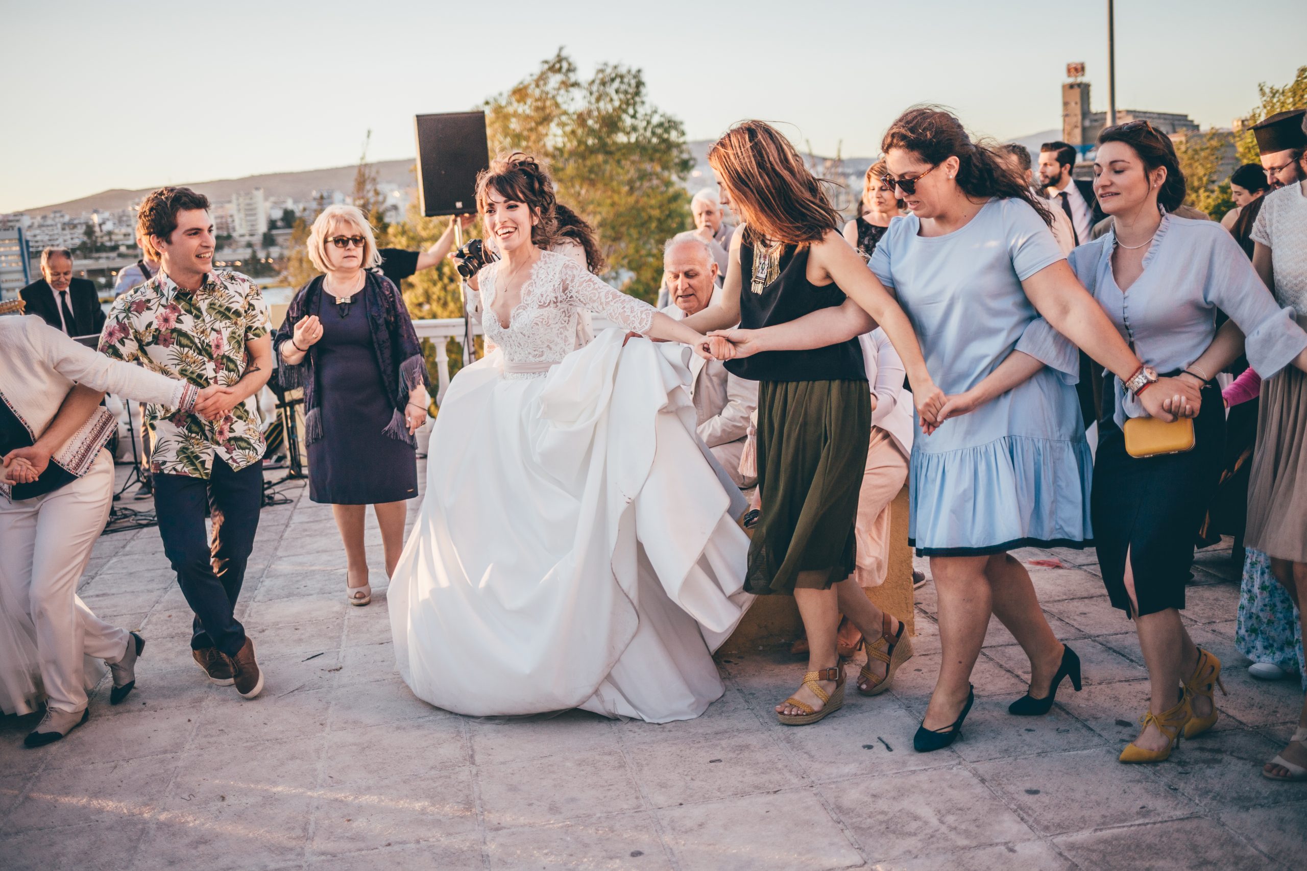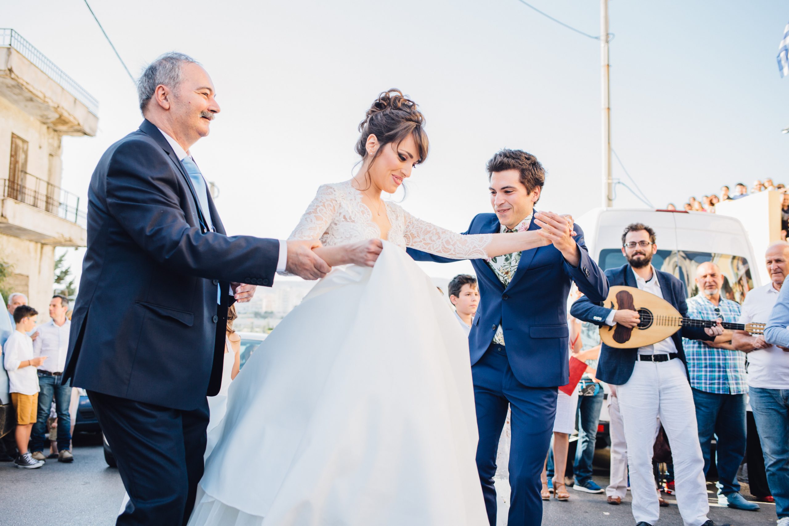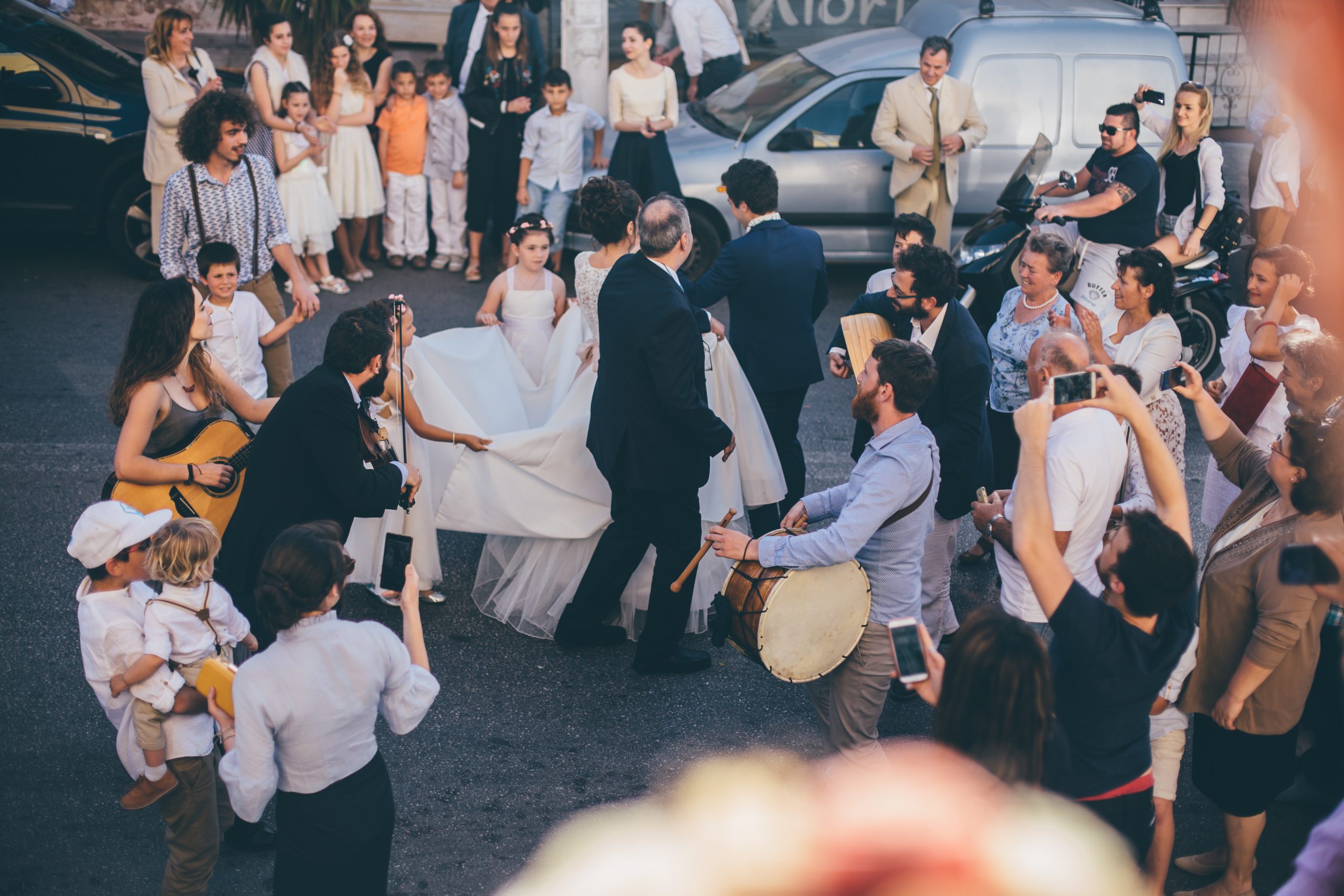 Μια πορεία λίγων μέτρων που κράτησε αρκετά αφού κάθε τρεις και λίγο κάποιος θα έπιανε να στροφάρει τη νύφη, έτσι για προθέρμανση. Το κέφι και η διάθεση είναι ήδη ανεβασμένα.